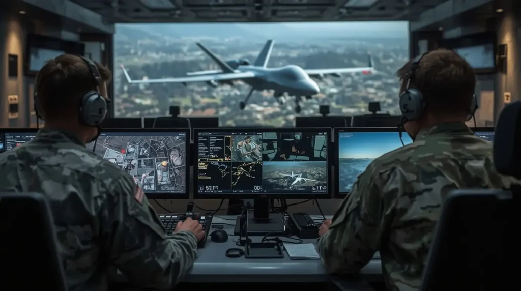 The Reaper is flown by a two person crew, a pilot and a sensor operator, both who work remotely. The Reaper is equipped with advanced military sensors and real-time battlefield technologies to provide commanders with battlefield awareness. In addition, the Reaper is equipped with advanced sensors that serve to identify and tag military targets, serving as a target designator, and as a strike aircraft when fitted with air-to-surface missiles and laser-guided bombs.